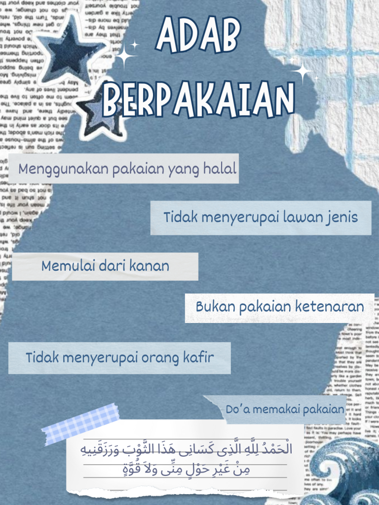 This poster is about the etiquette of dressing. In this poster, we can learn the etiquette of dressing, from choosing clothes to praying when wearing clothes.