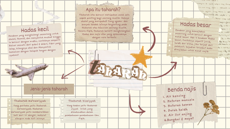In this mind map, I explain about taharah, starting from what taharah is to its types, and I add examples.